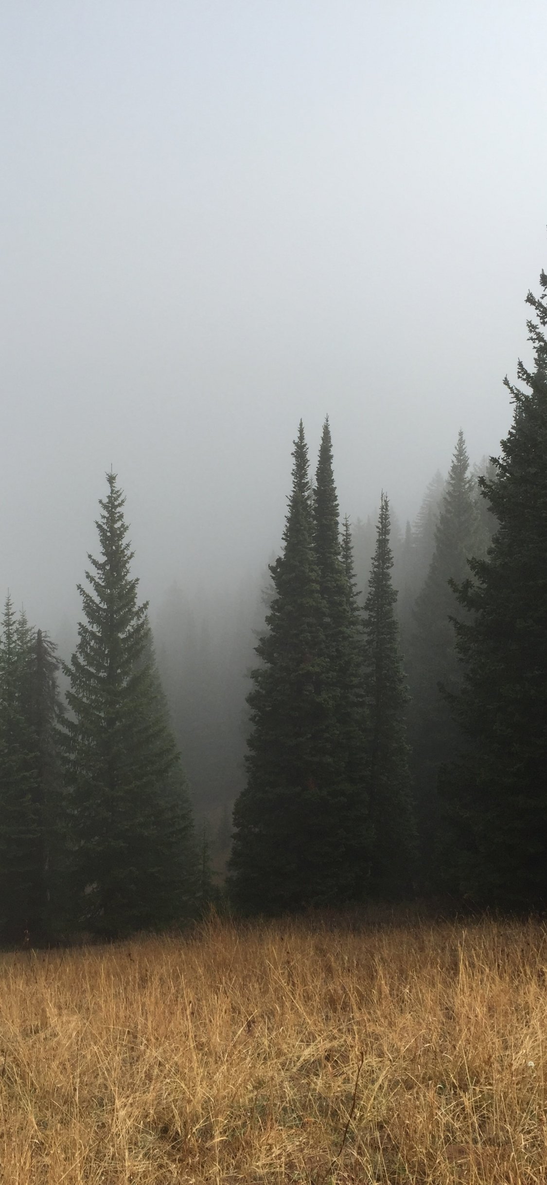 Обои: туман, хвойные деревья - 1125x2436