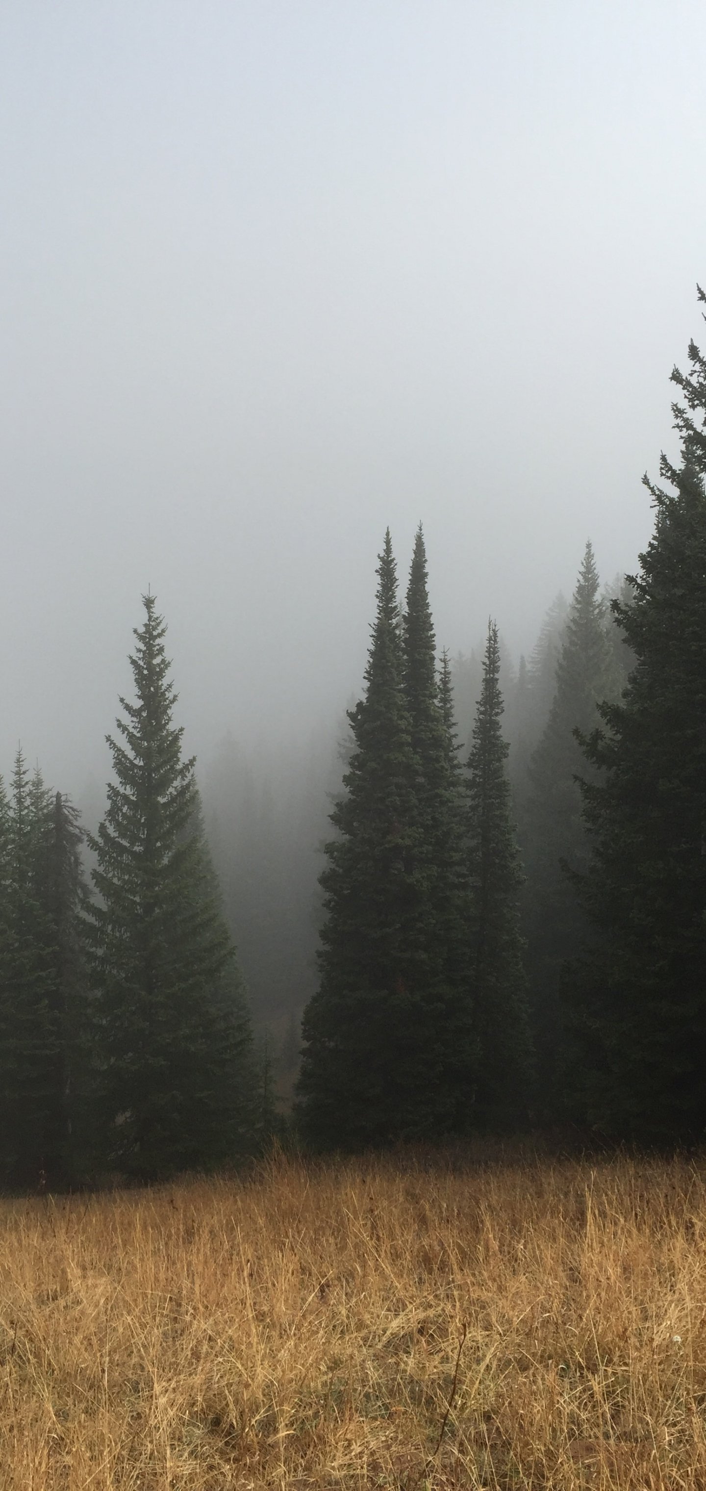 Обои: туман, хвойные деревья - 1440x3040