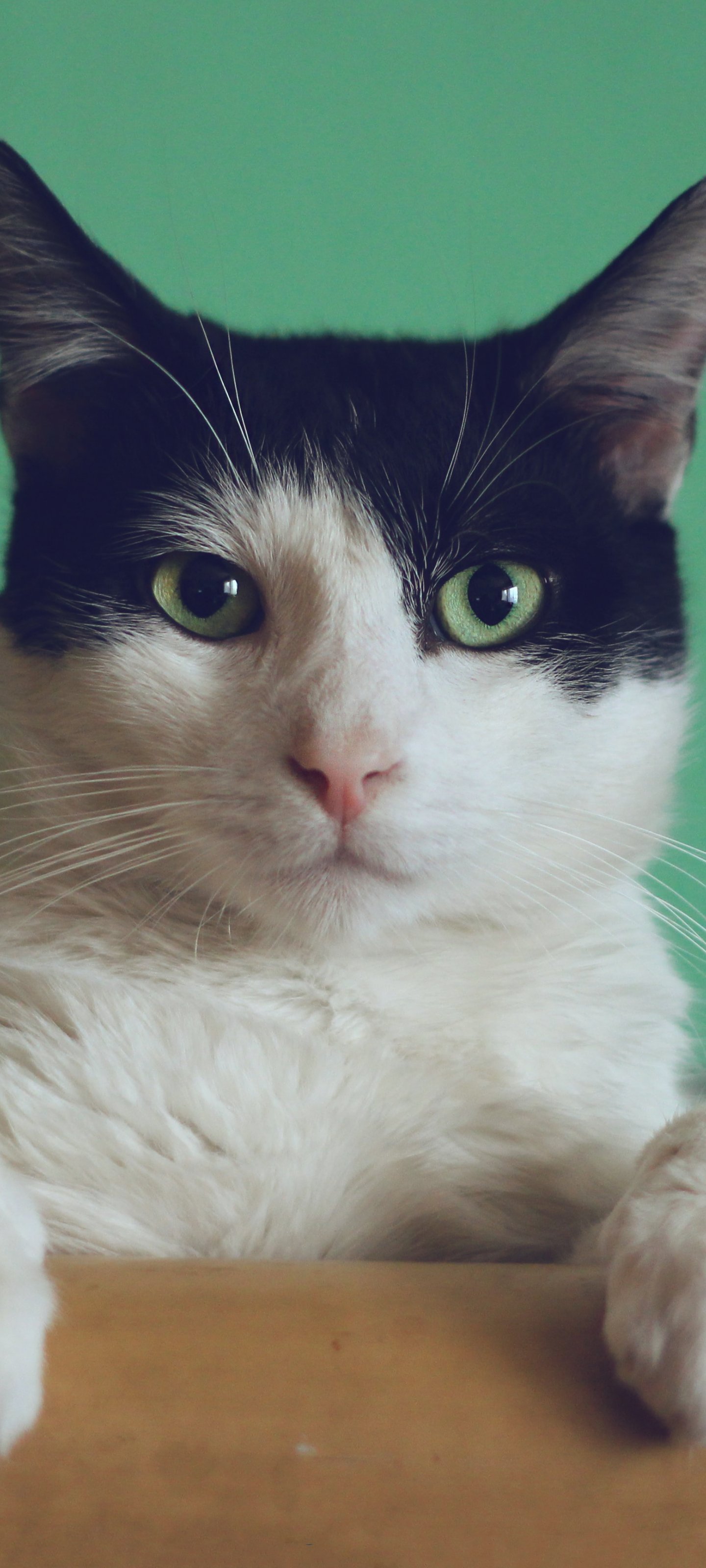 Обои: кот, зеленые глаза - 1440x3200