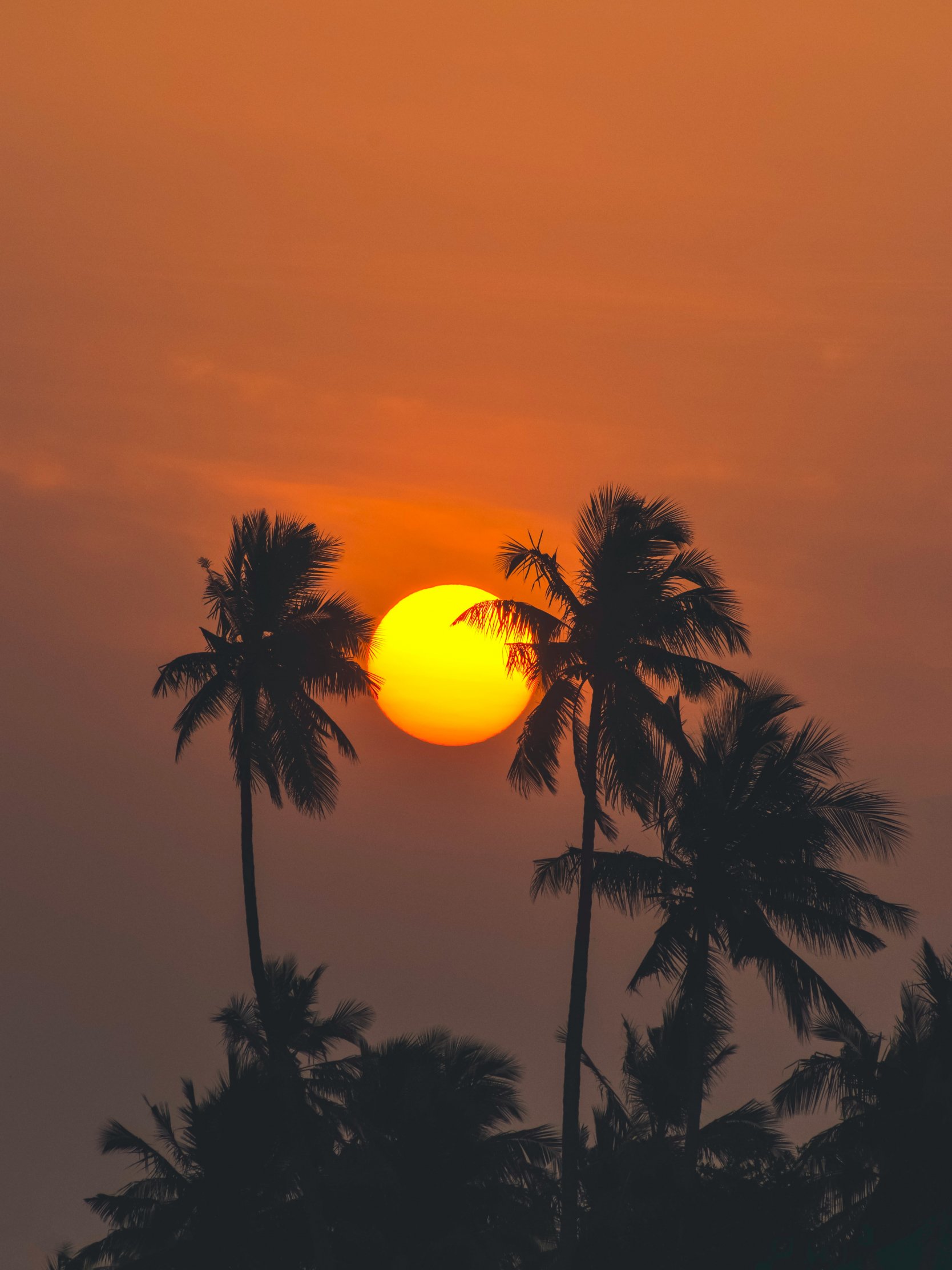 Обои: солнце, вечер, пальмы - 1668x2224