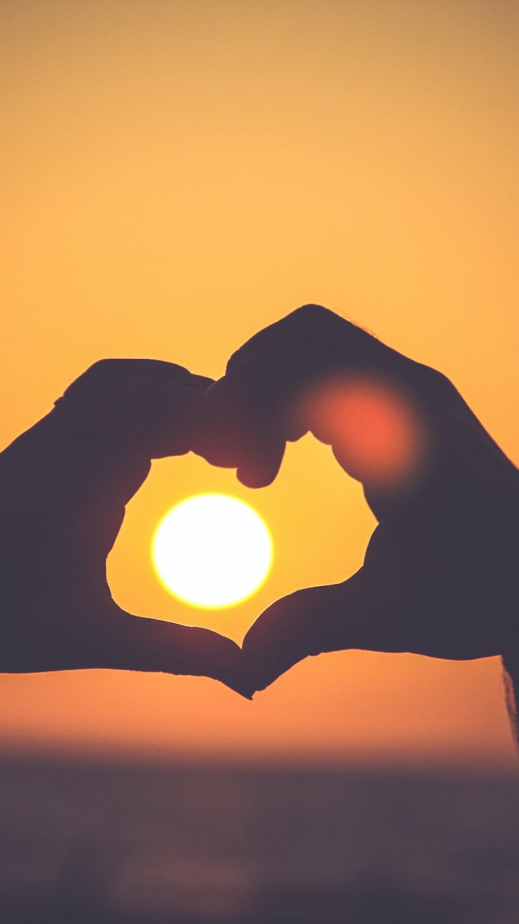 Обои: сердце, закат - 750x1334