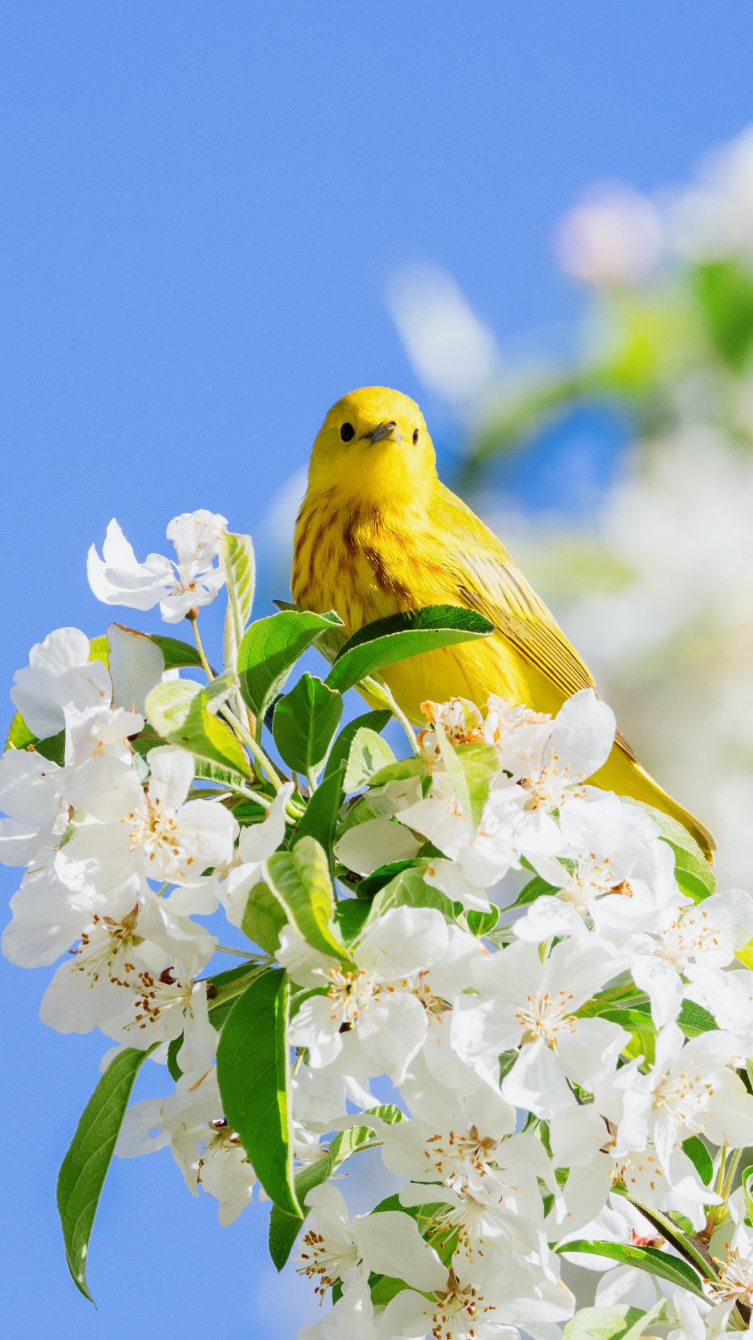 Обои: желтая птица, цветение - 1080x1920
