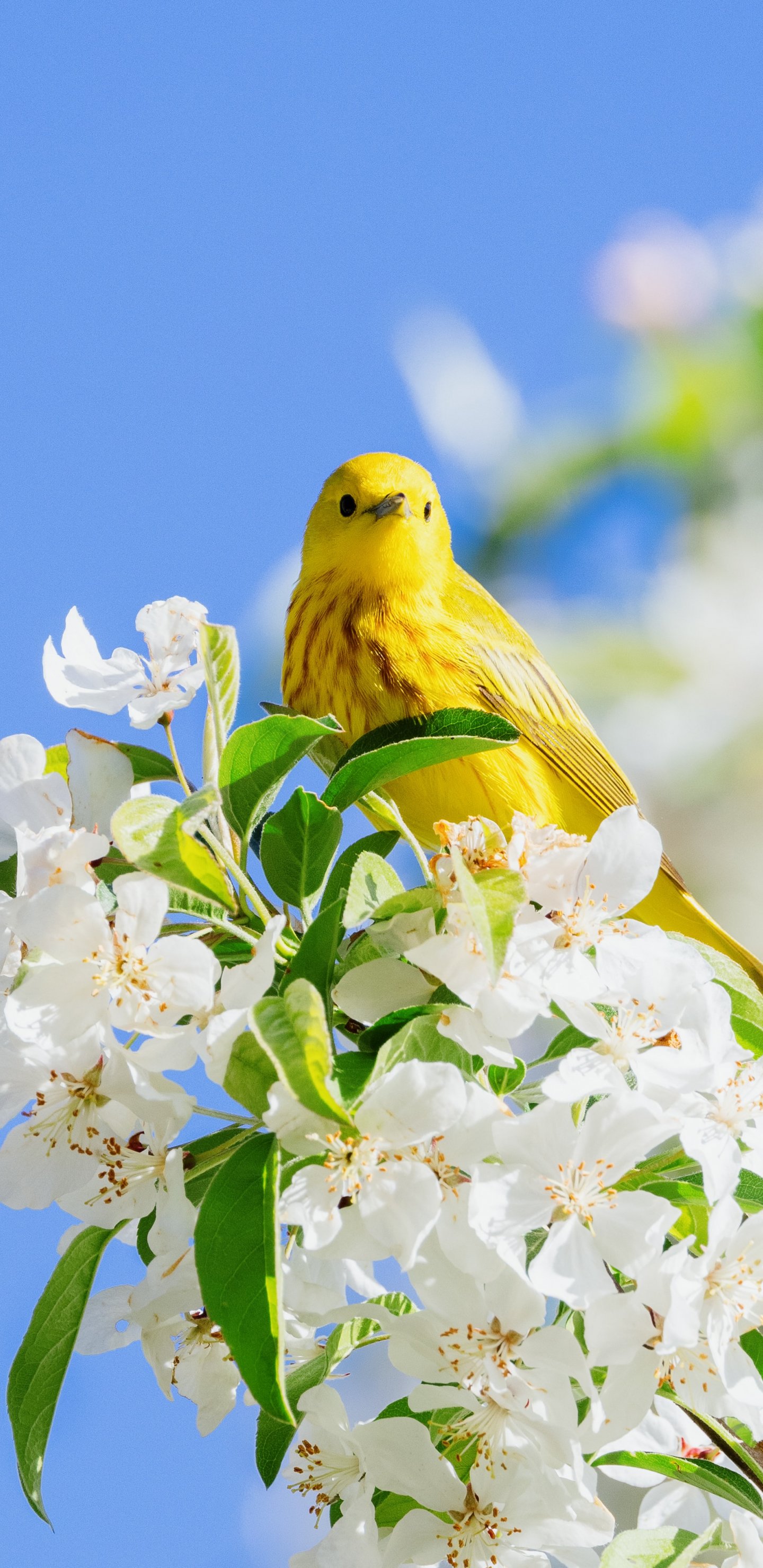 Обои: желтая птица, цветение - 1440x2960