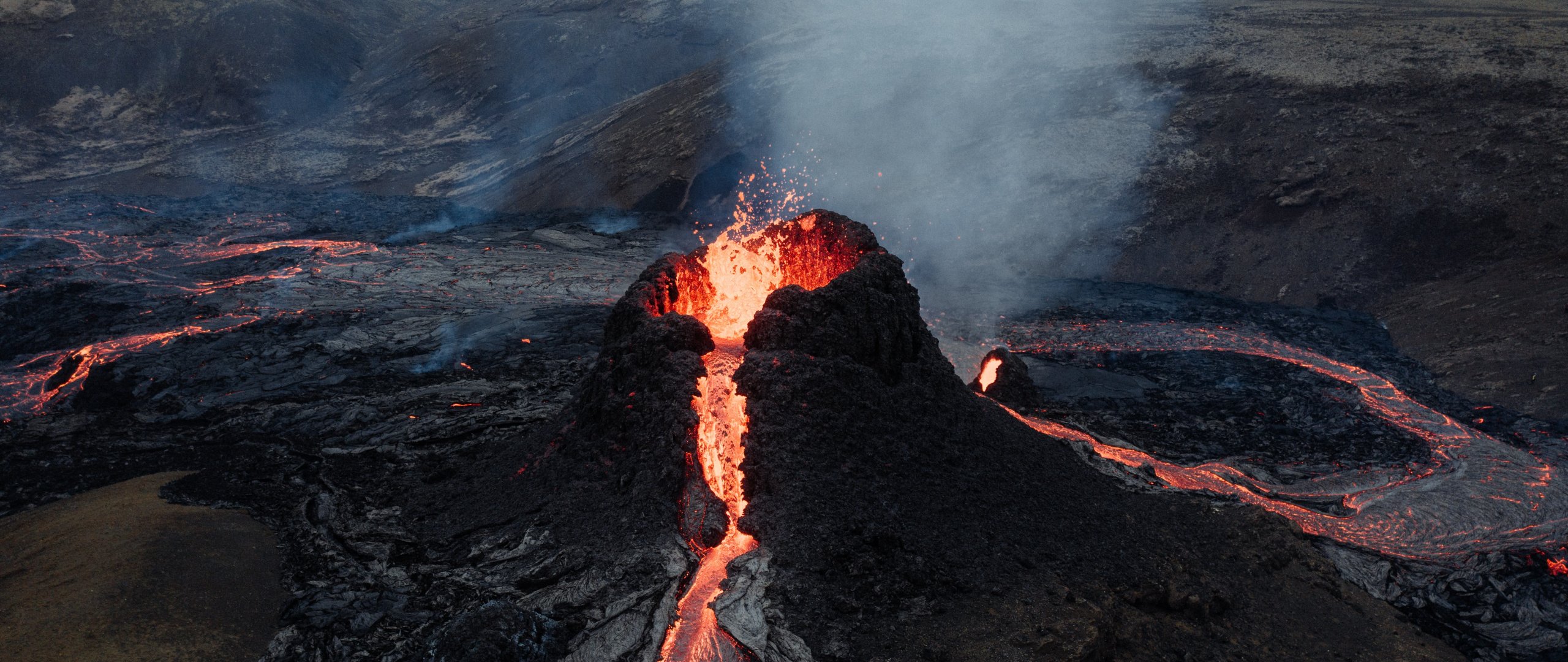 Обои: лава, извержение - 2560x1080