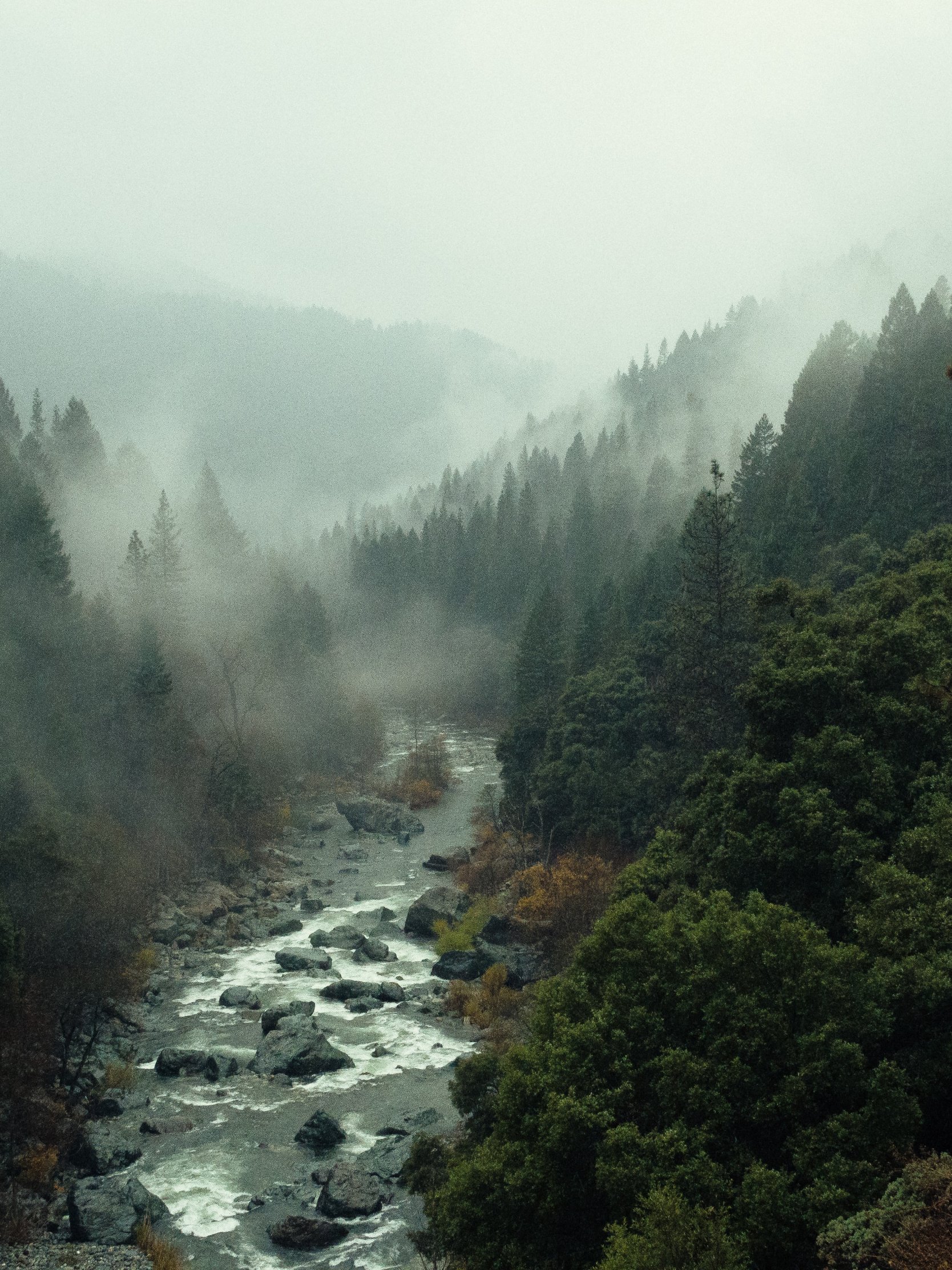 Обои: река, лес, туман - 1668x2224