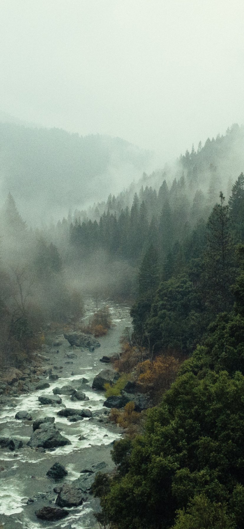 Обои: река, лес, туман - 828x1792