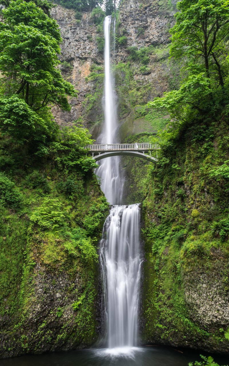 Обои: водопад, мост, горы - 800x1280