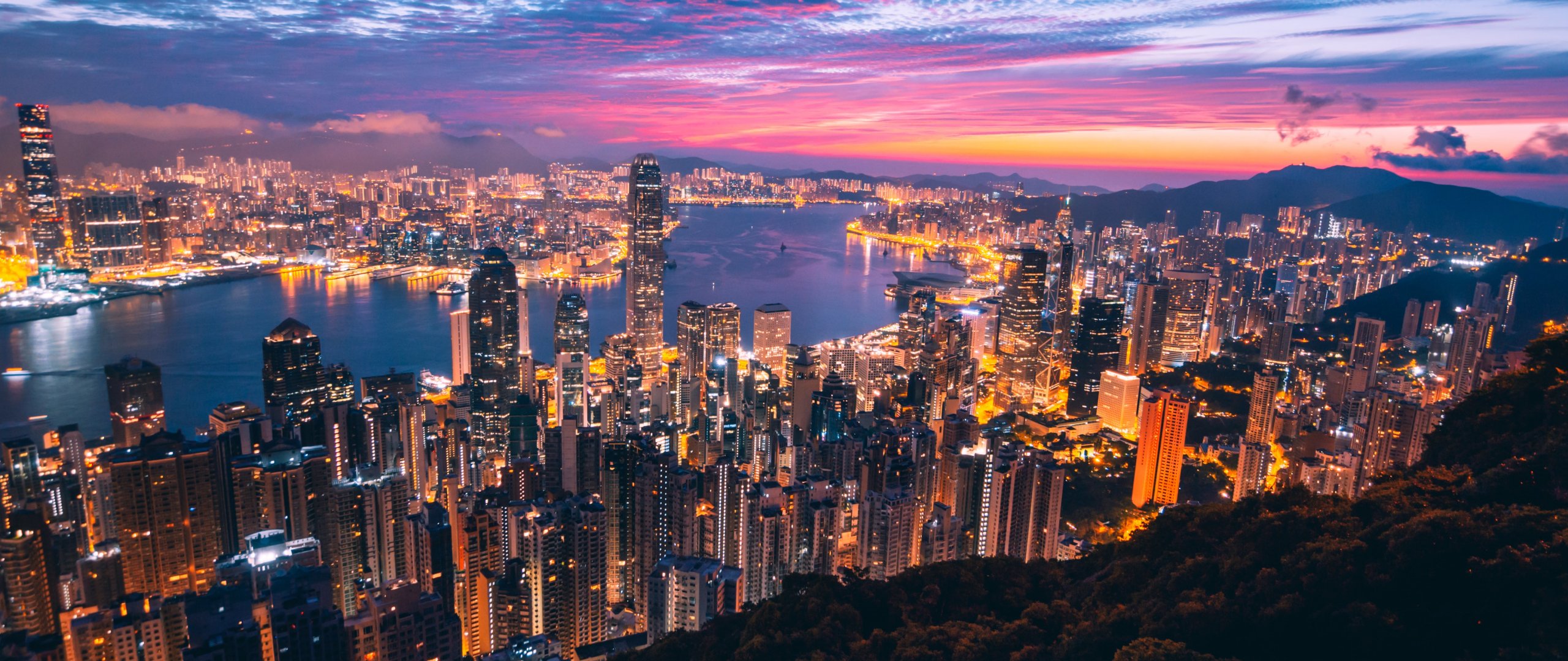 Обои: Гонконг, огни города - 2560x1080