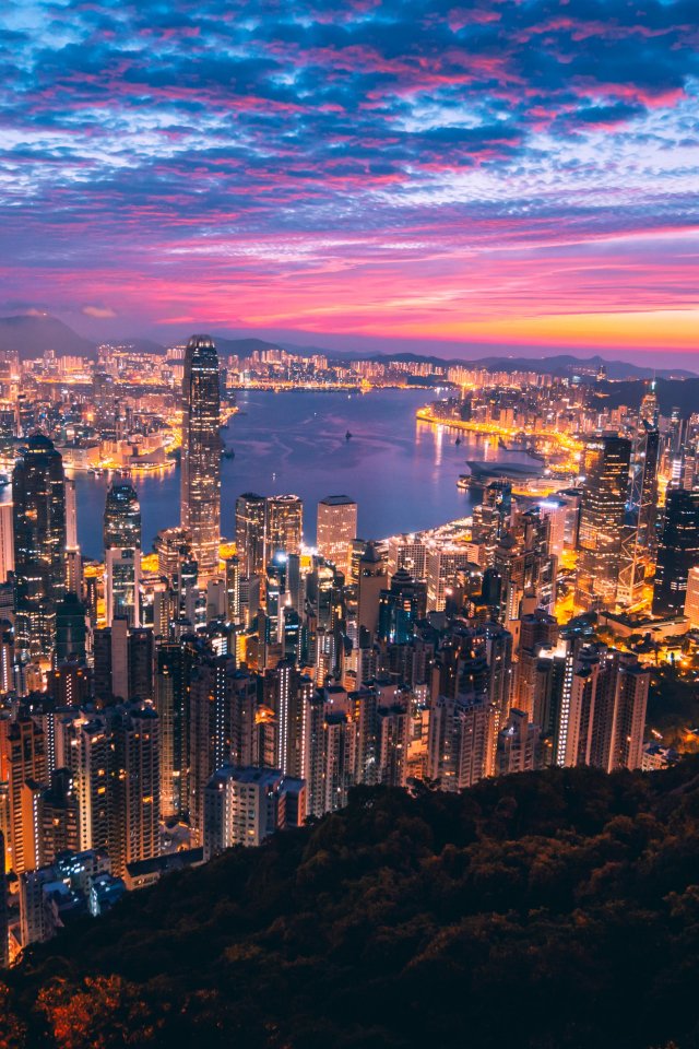 Обои: Гонконг, огни города - 640x960