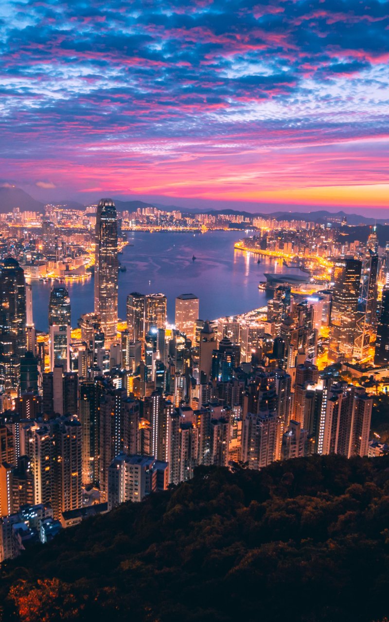 Обои: Гонконг, огни города - 800x1280