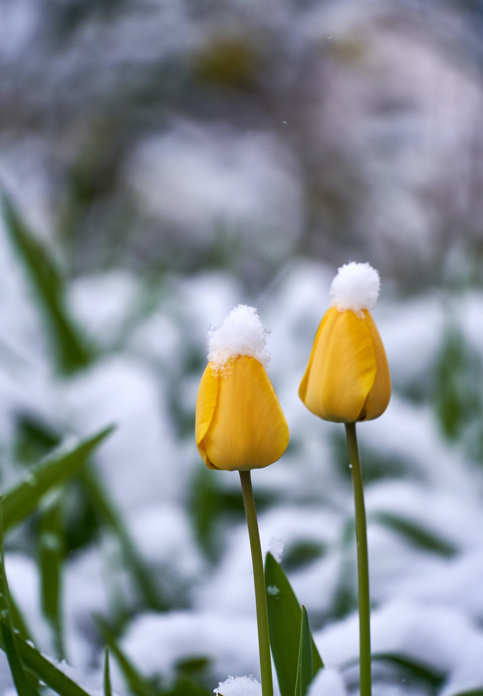 Обои: тюльпаны, снег - 1640x2360