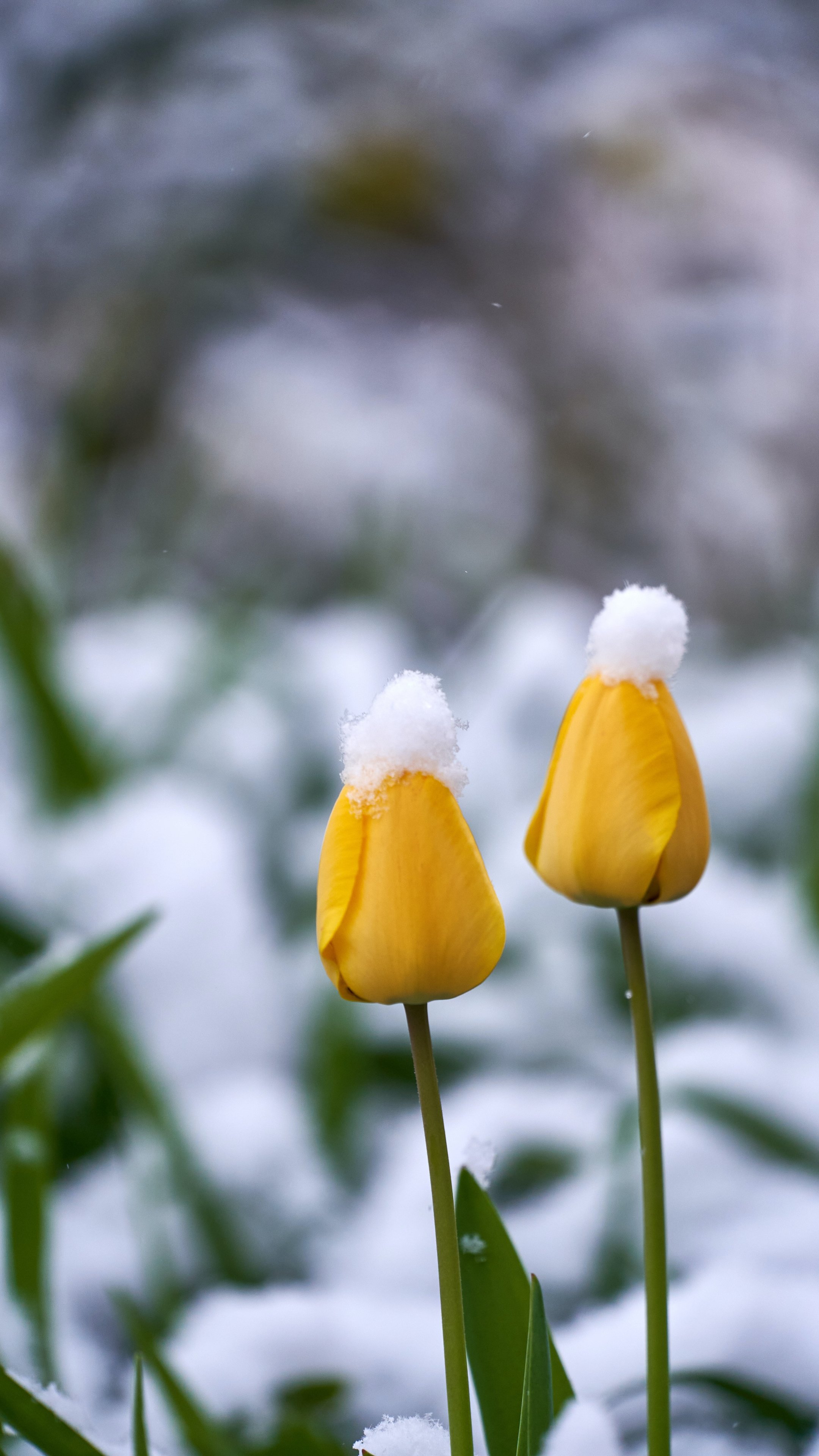 Обои: тюльпаны, снег - 2160x3840