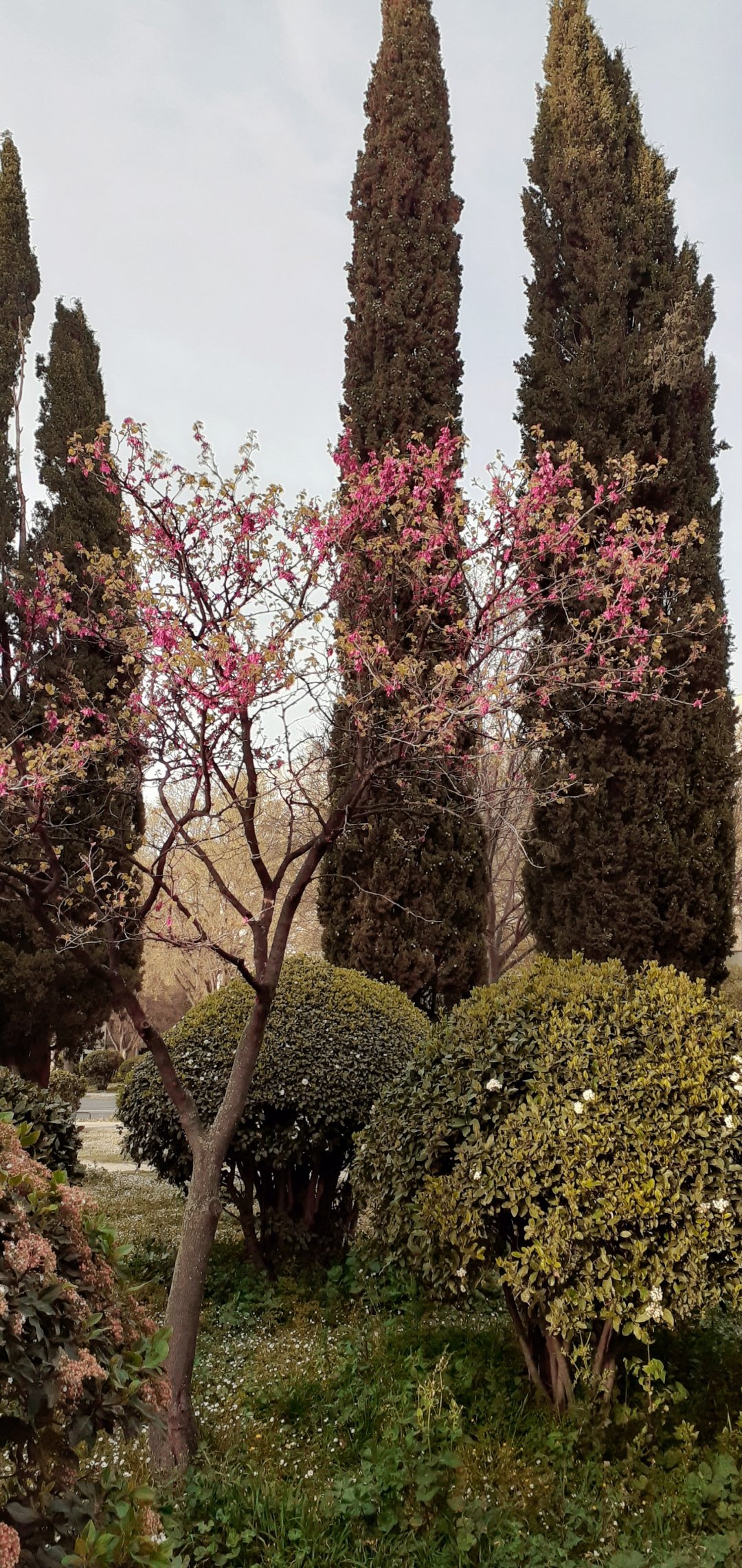 Обои: деревья, клумба, газон - 1080x2280