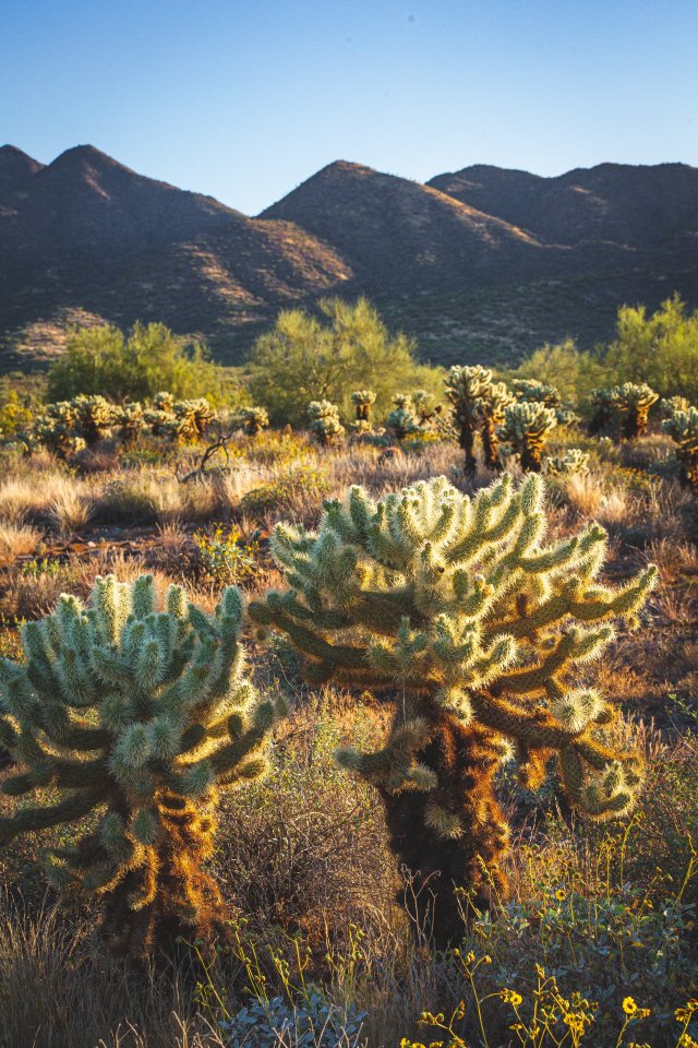 Скоттсдейл, Аризона, США, кактусы у гор