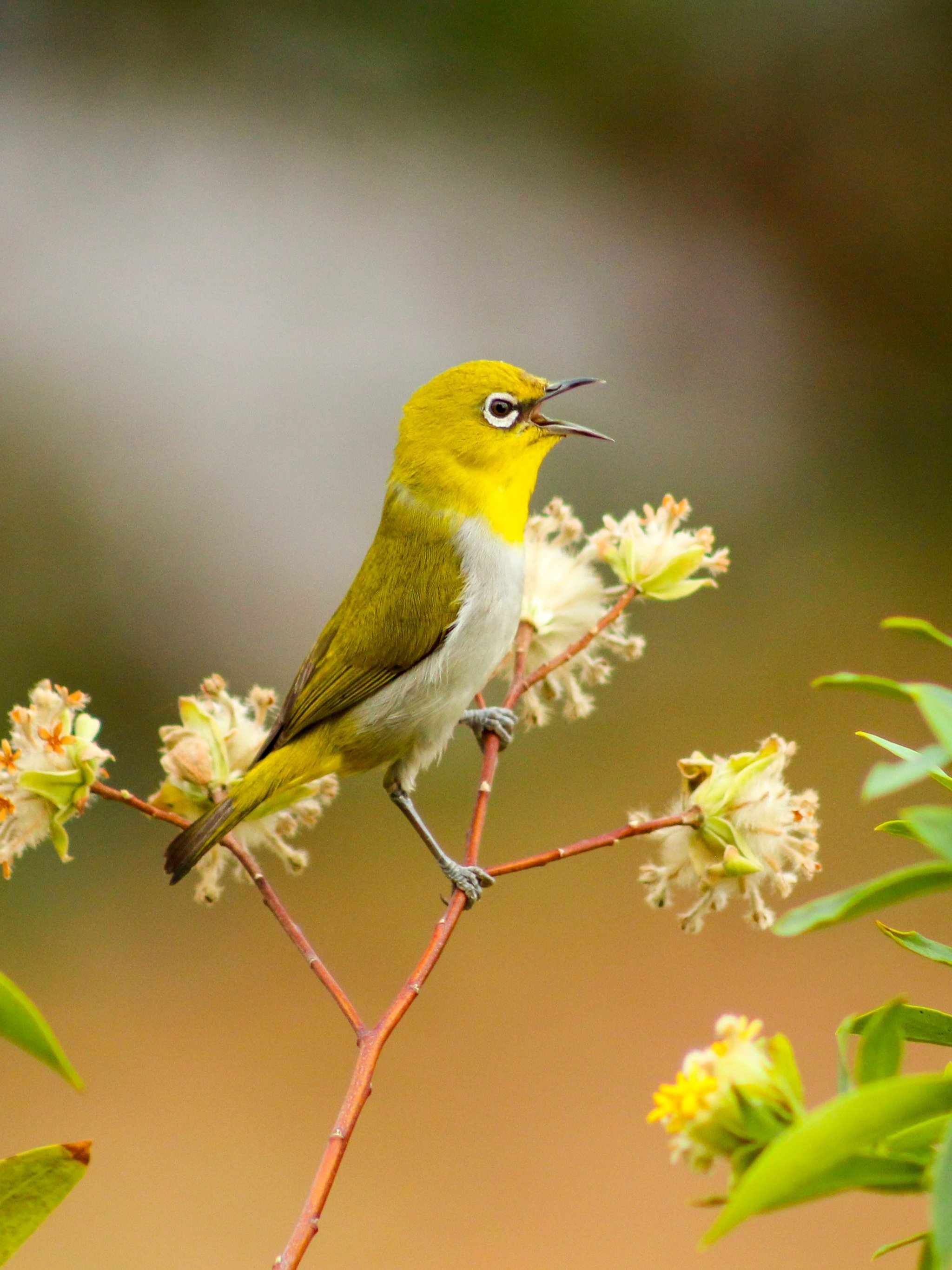 Обои: маленькая птичка, цветы - 2048x2732