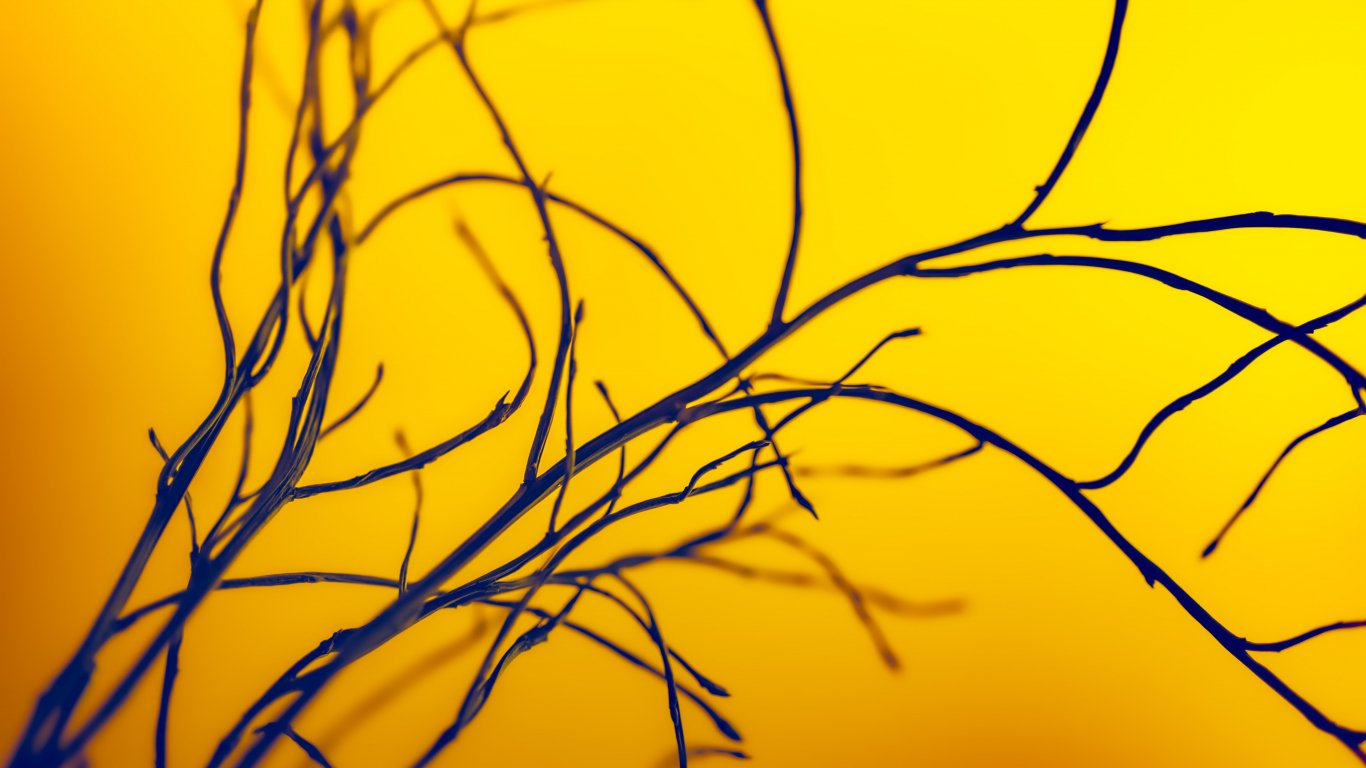 Обои: желтое небо, ветки - 1366x768