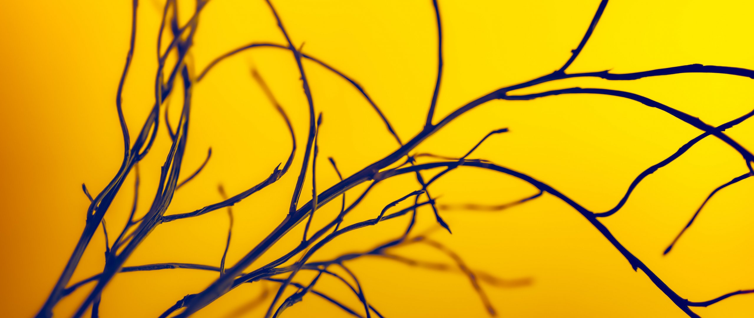 Обои: желтое небо, ветки - 2560x1080