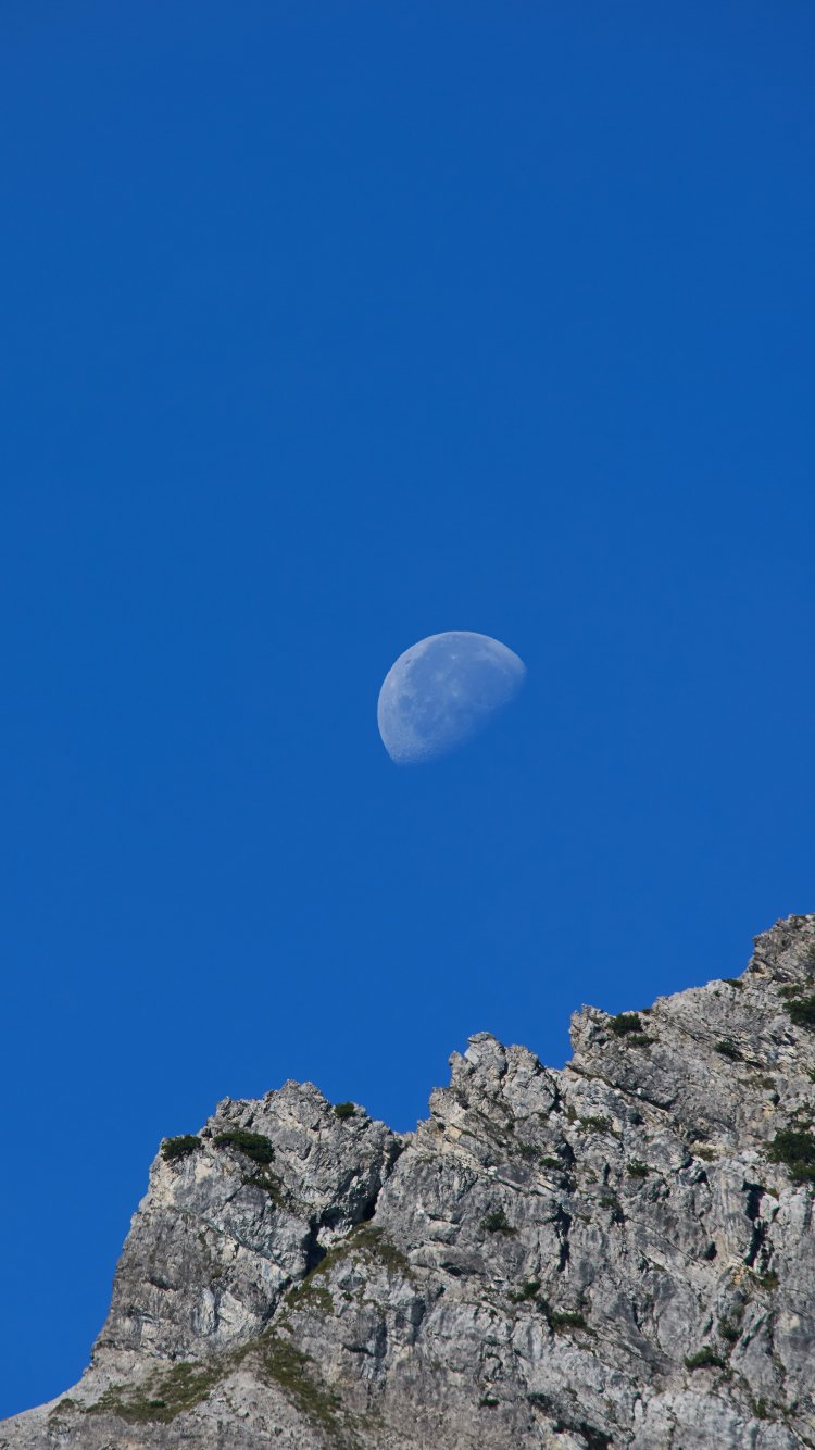 Обои: горы, луна, день - 750x1334
