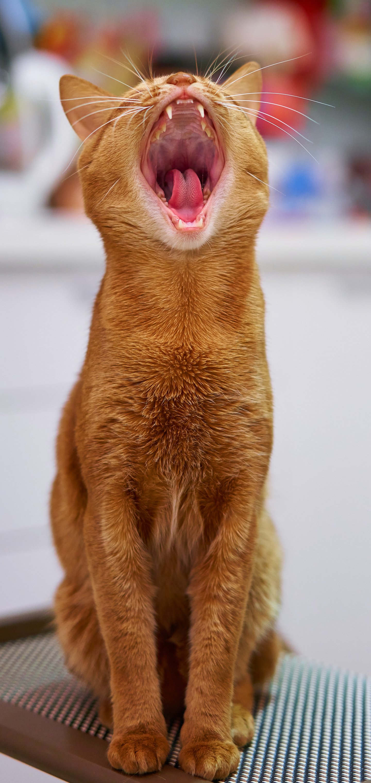 Обои: рыжий кот, зевает - 1440x3040