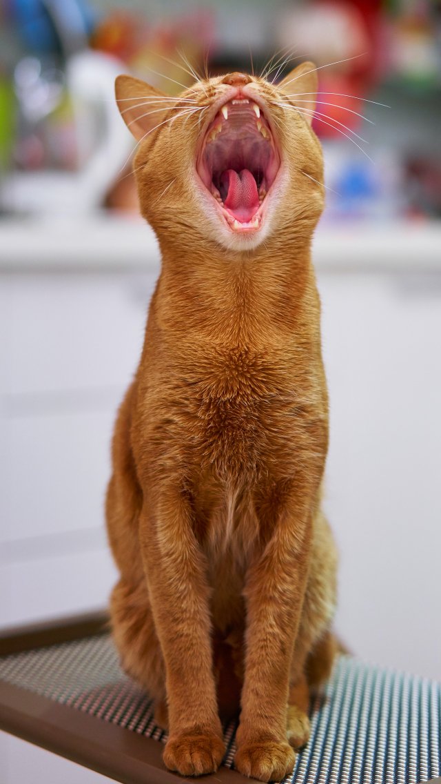 Обои: рыжий кот, зевает - 640x1136