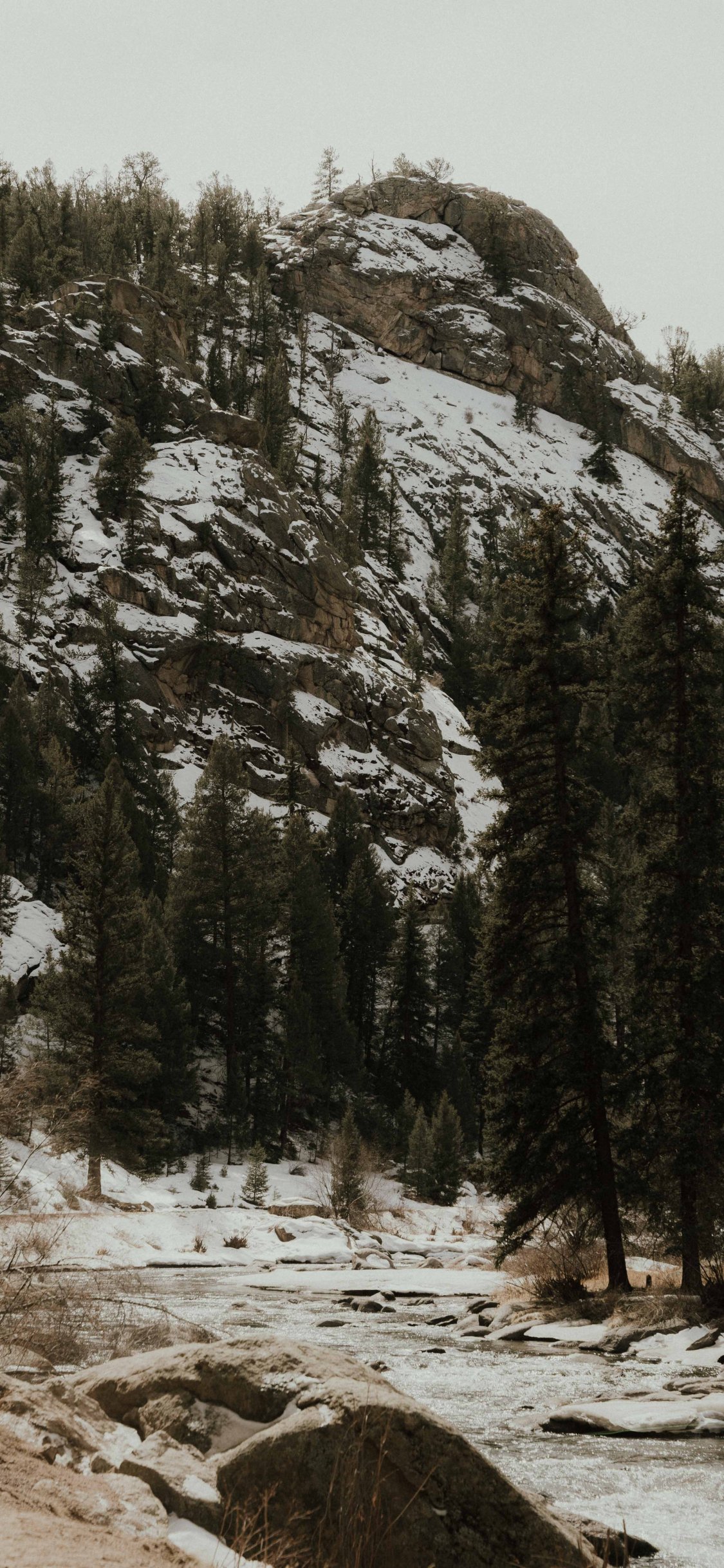Обои: лес, горы, горная река - 1125x2436