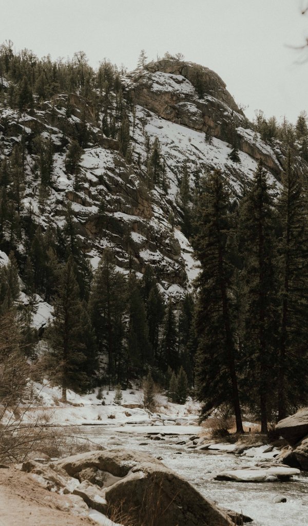 Обои: лес, горы, горная река - 600x1024