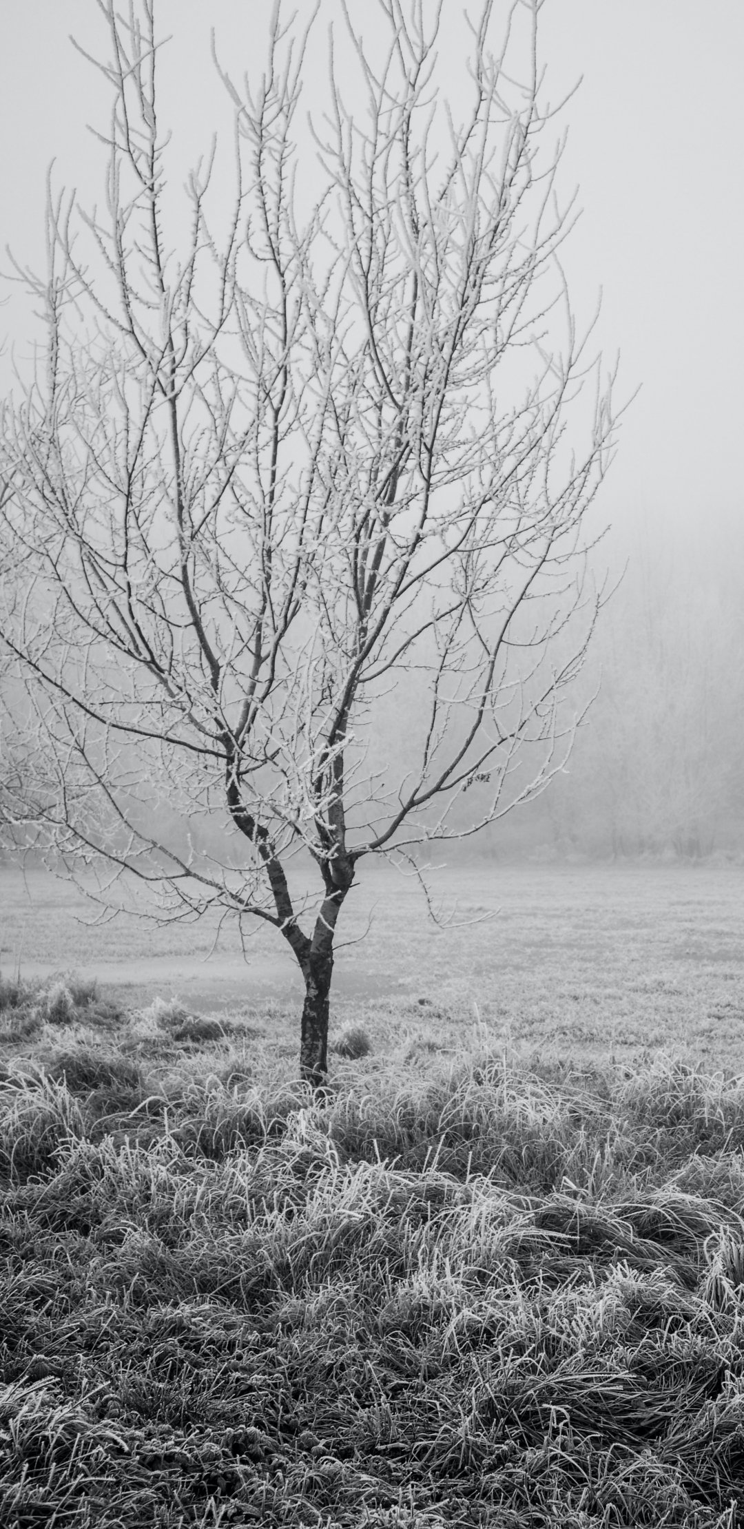 Обои: первые заморозки, дерево - 1080x2220