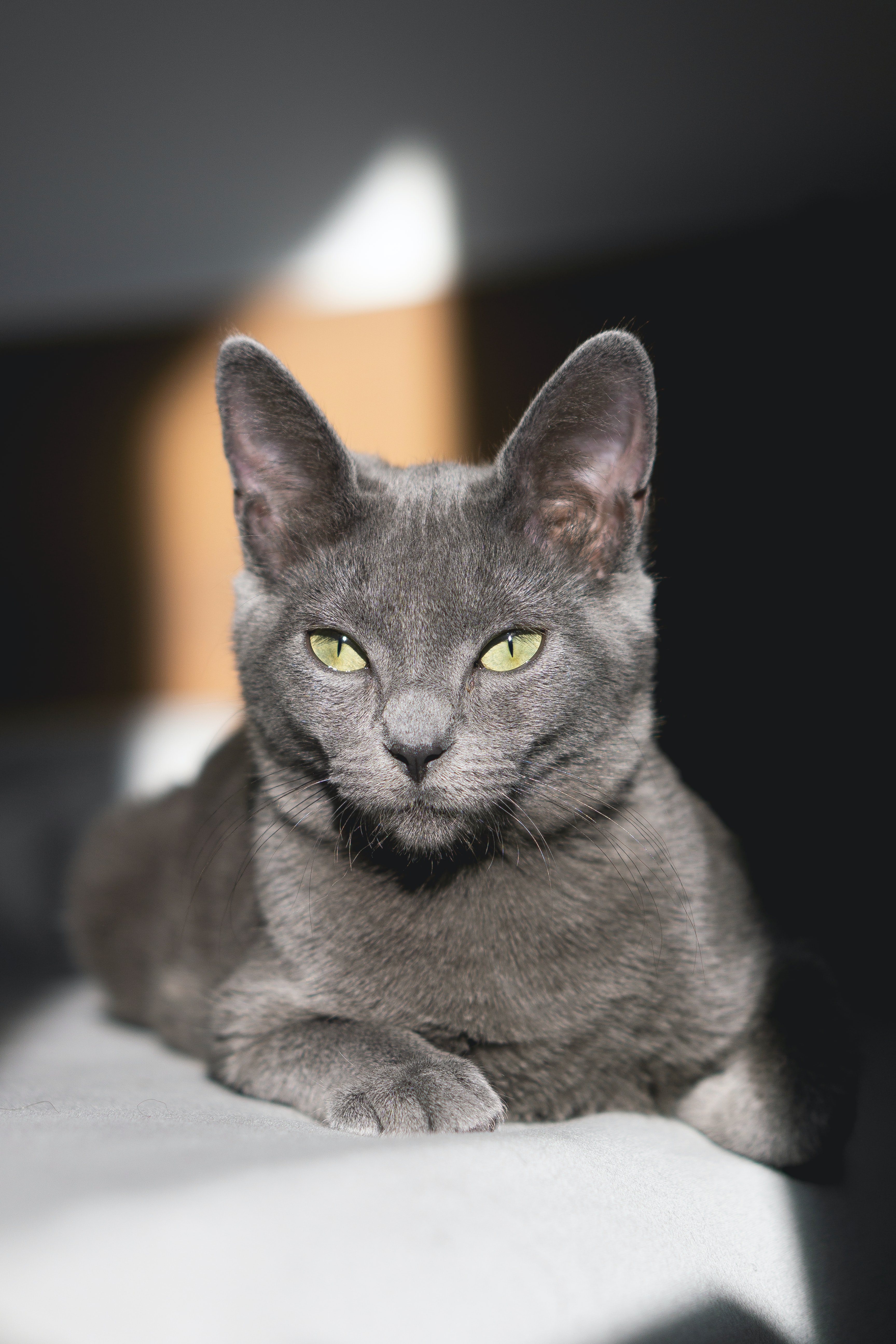 Обои: серый кот, зеленые глаза - 3455x5182