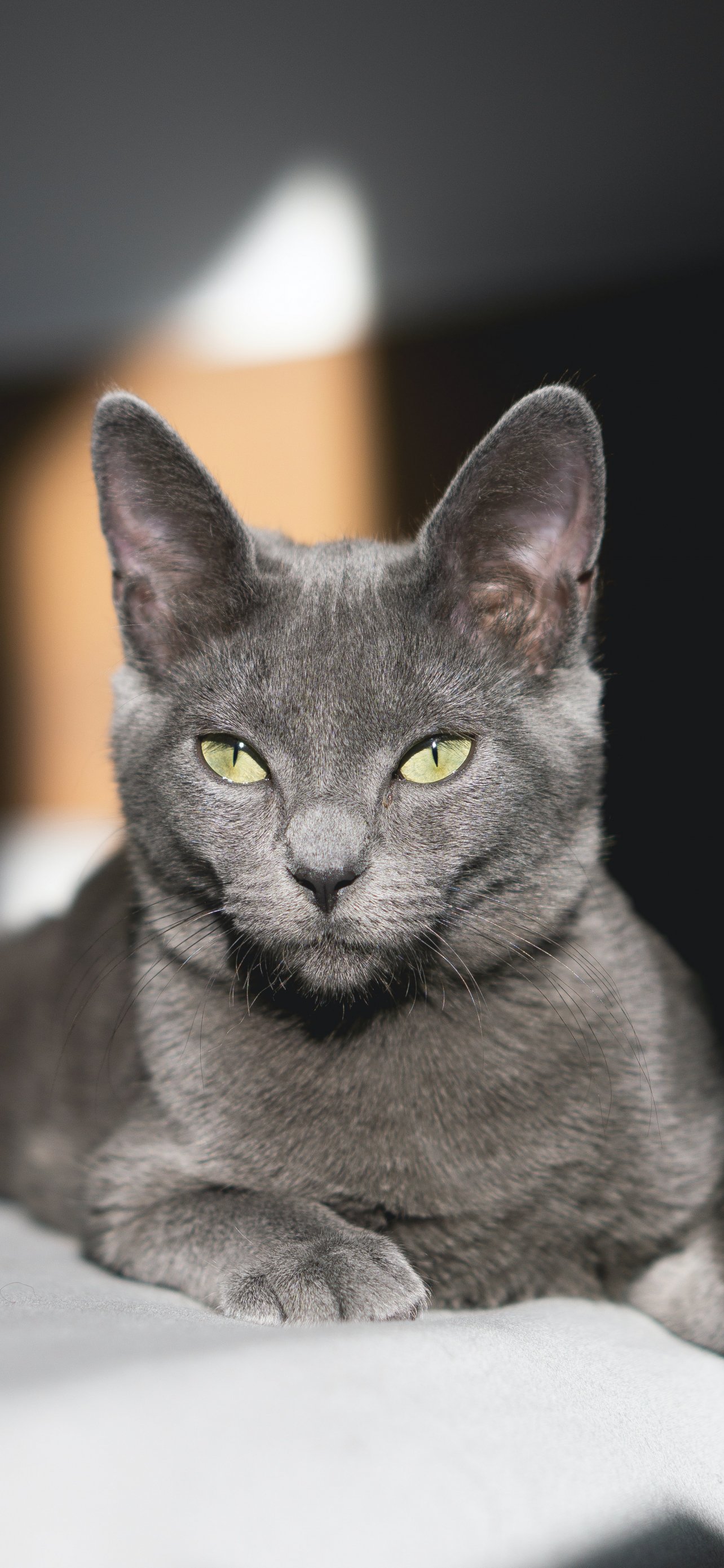 Обои: серый кот, зеленые глаза - 1284x2778