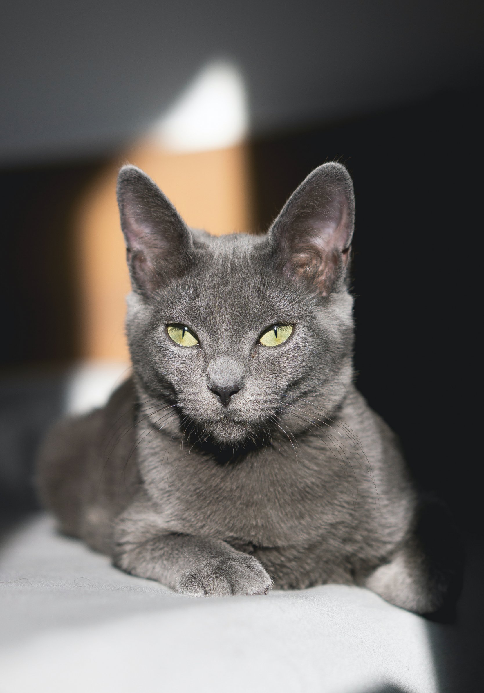 Обои: серый кот, зеленые глаза - 1668x2388