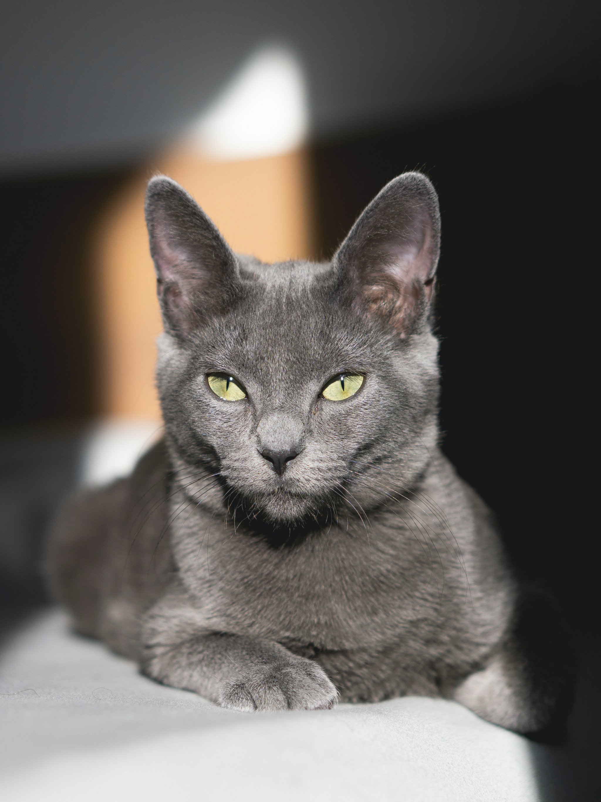 Обои: серый кот, зеленые глаза - 2048x2732