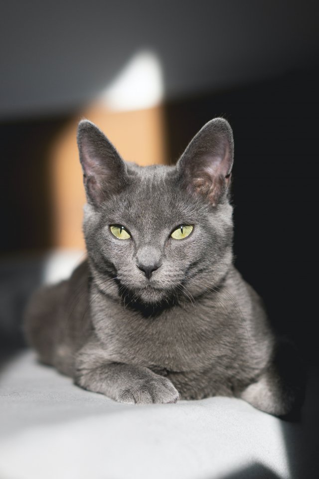 Обои: серый кот, зеленые глаза - 640x960