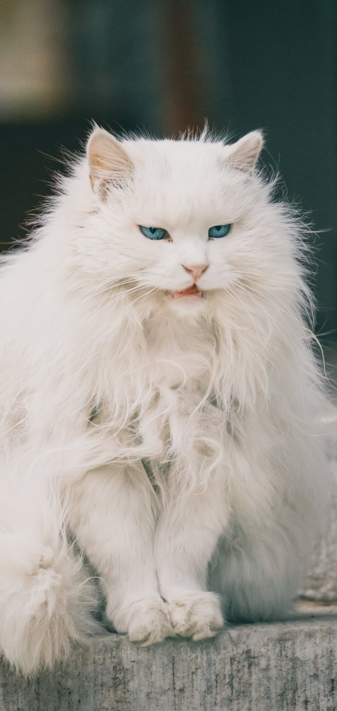 Обои: белый кот, голубые глаза - 1080x2280