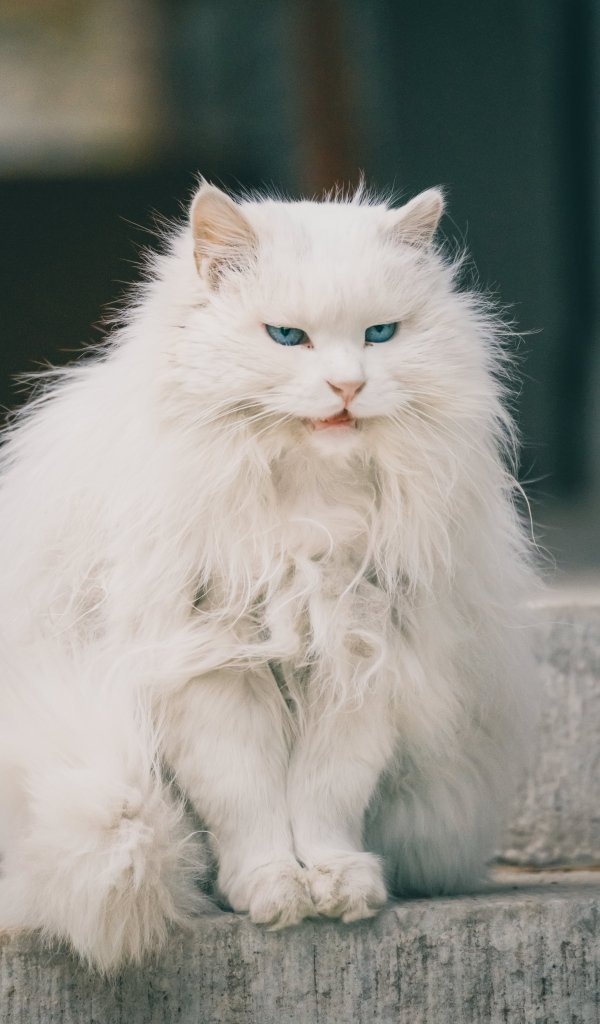 Обои: белый кот, голубые глаза - 600x1024