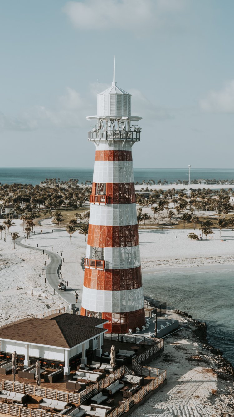 Обои: маяк, пляж, берег - 750x1334