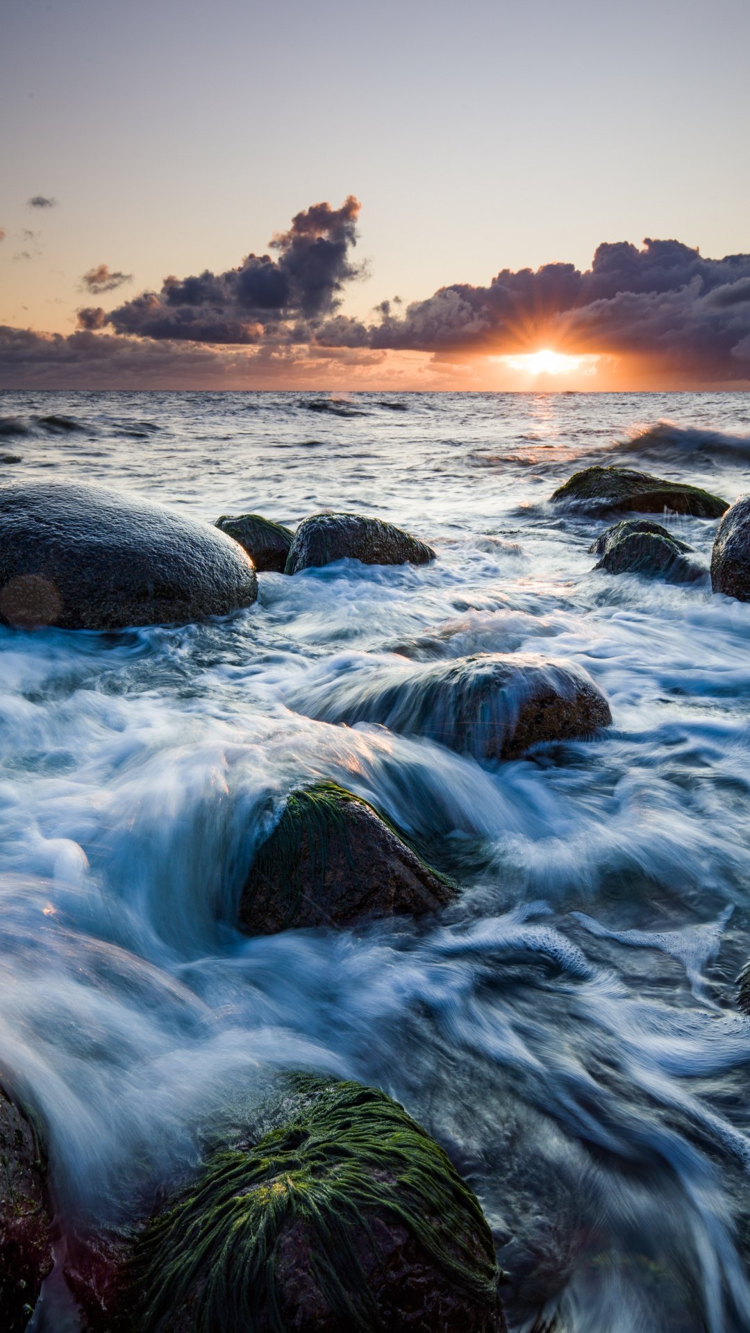 Обои: морские волны, восход солнца - 1080x1920
