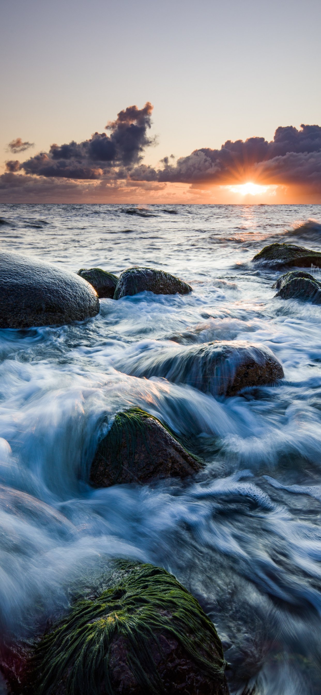 Обои: морские волны, восход солнца - 1242x2688