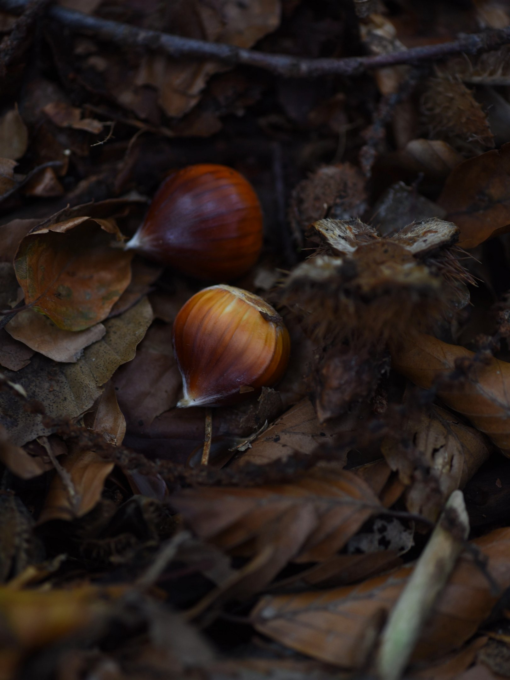 Обои: опавшие листья, орехи - 1620x2160