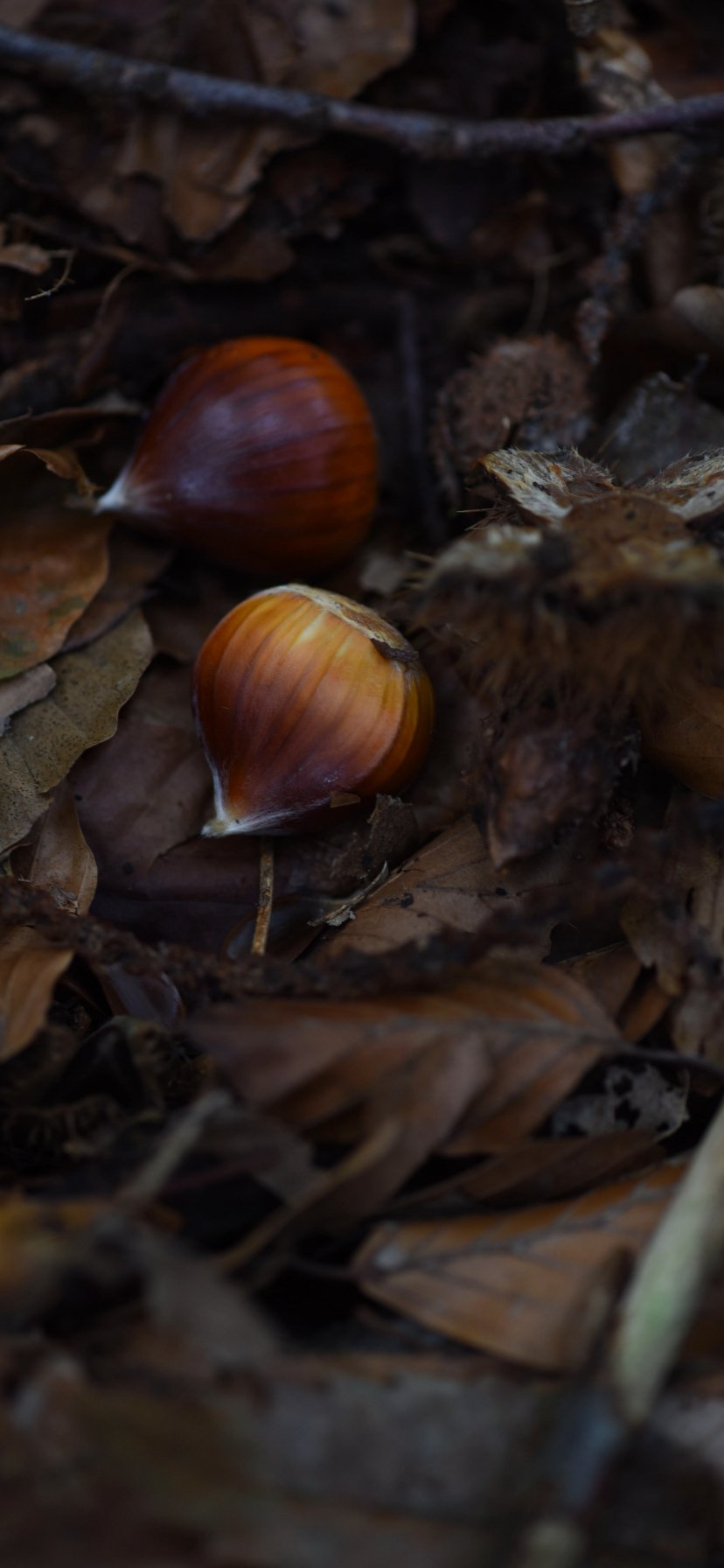 Обои: опавшие листья, орехи - 828x1792