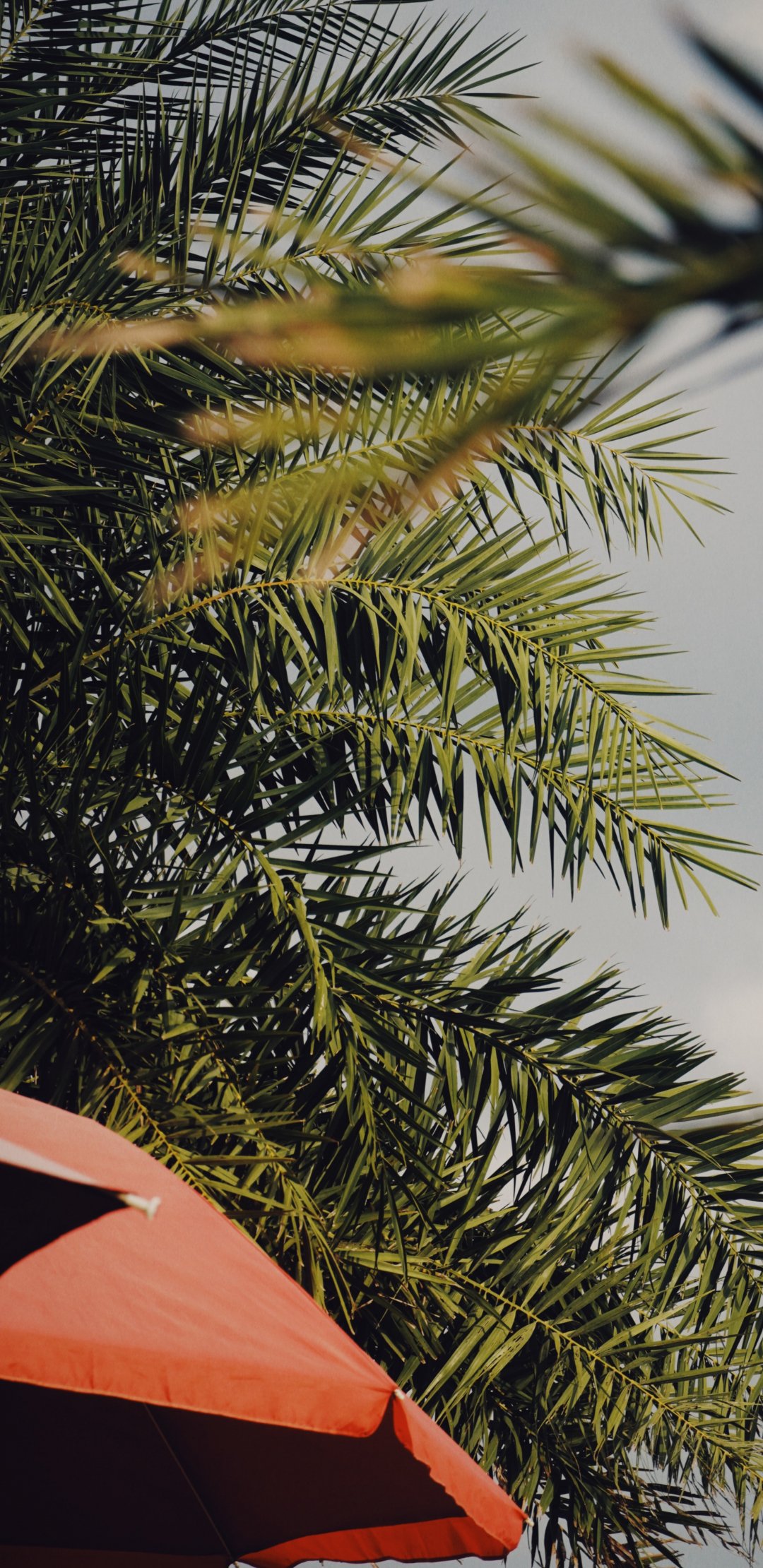 Обои: пальма, над зонтом - 1080x2220