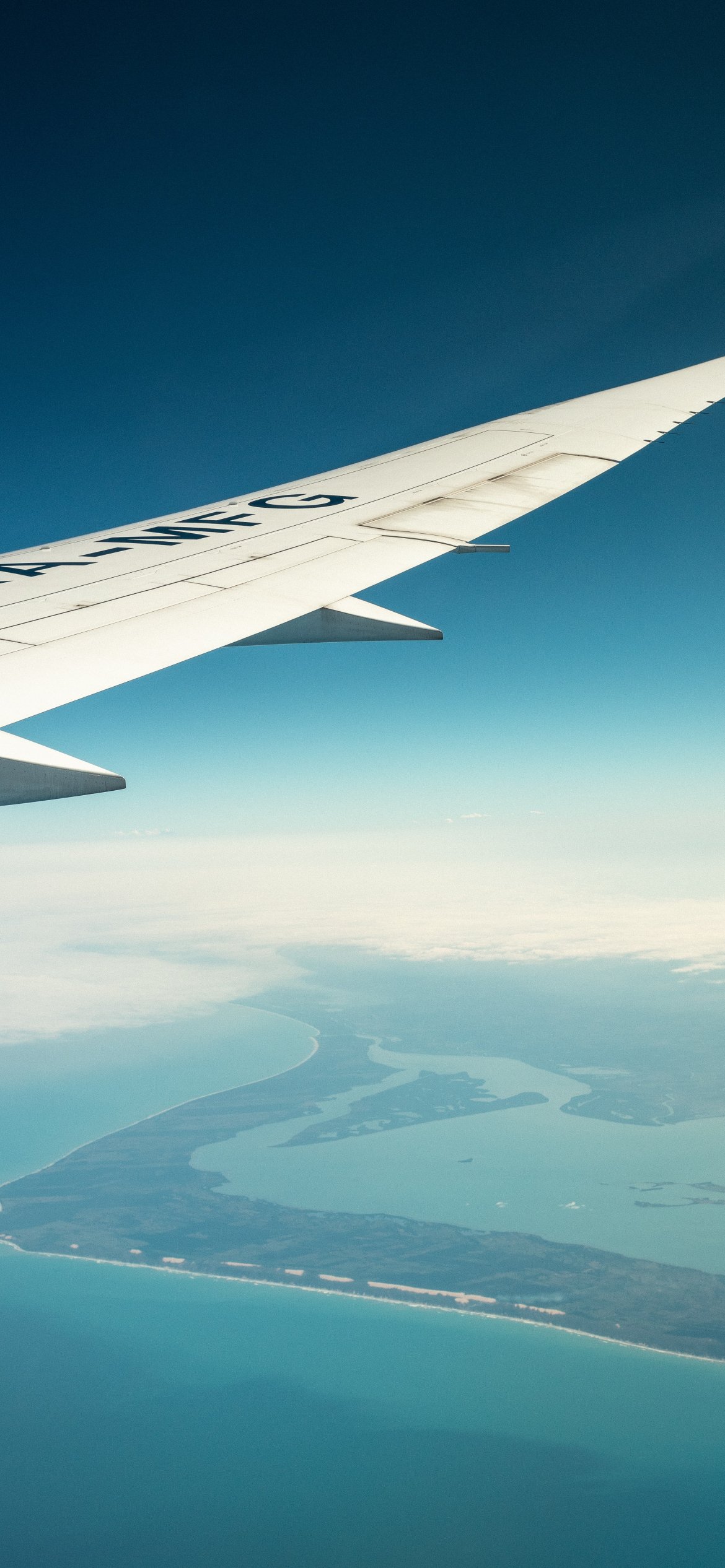 Обои: крыло самолета, над землей - 1170x2532