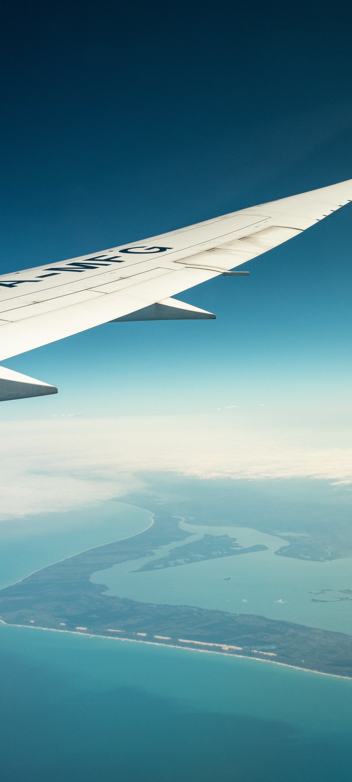 Обои: крыло самолета, над землей - 1440x3200