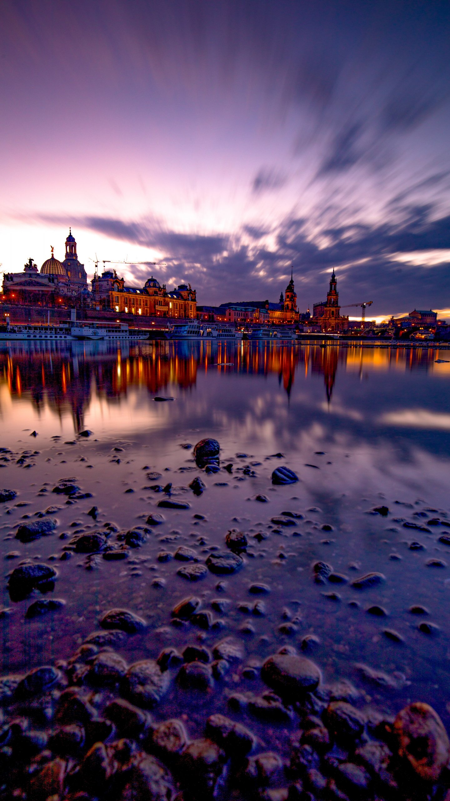 Обои: озеро, город, вечер - 1440x2560