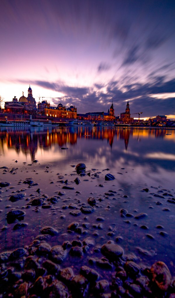 Обои: озеро, город, вечер - 600x1024