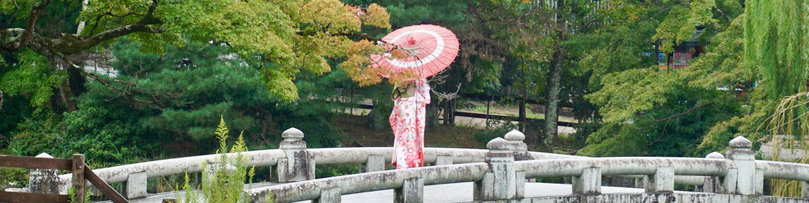 Обои: Киото, Япония, мостик через озеро - 1590x400