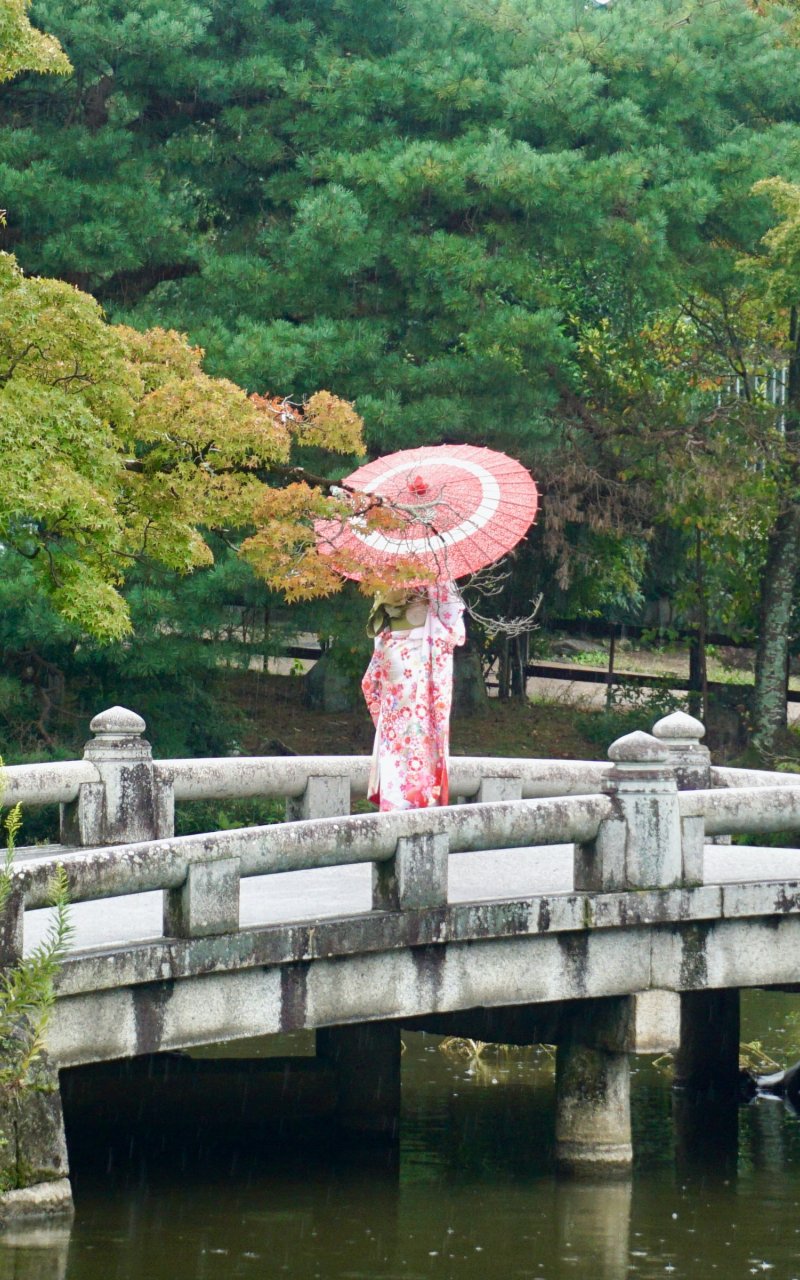 Обои: Киото, Япония, мостик через озеро - 800x1280