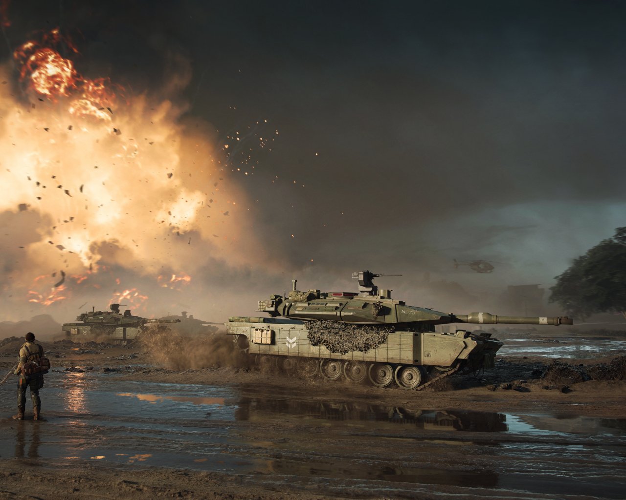 Обои: Battlefield 2042, танк, взрыв - 1280x1024