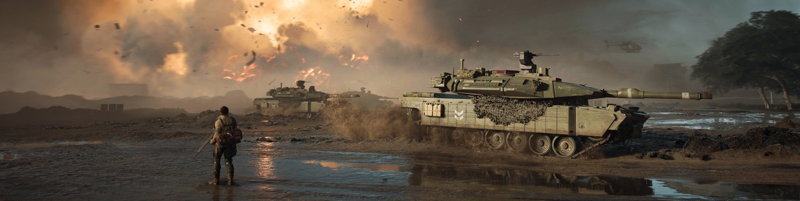 Обои: Battlefield 2042, танк, взрыв - 1590x400