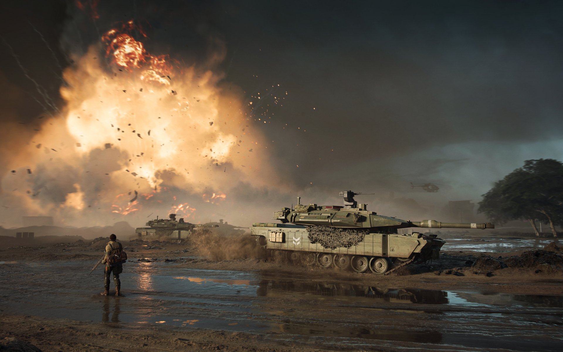 Обои: Battlefield 2042, танк, взрыв - 1920x1200