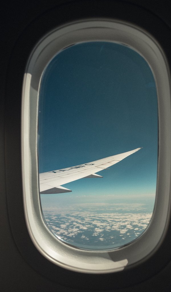 Обои: крыло самолета, вид из иллюминатора - 600x1024